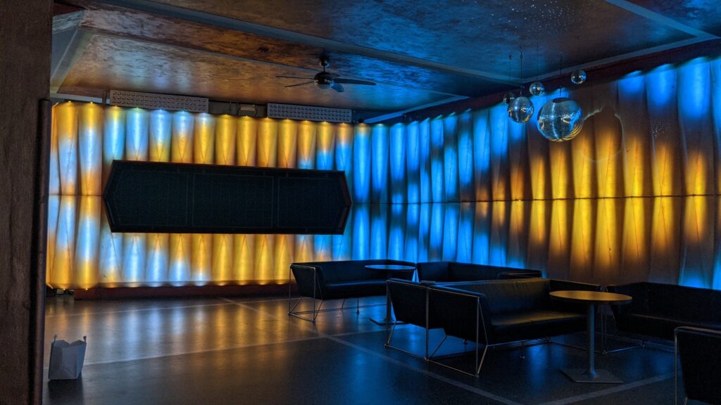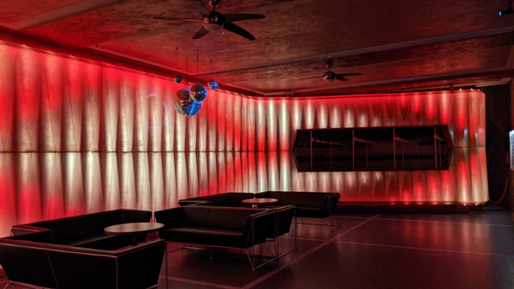 Jedním z těchto designových kousků je i výrazná světelná stěna, do nedávna pouze červená. Majitelé klubu jí ale chtěli vdechnout nový život a využít její potenciál naplno. Potřebovali do ní instalovat LED pásky, díky kterým by přehrávala barevné scény. Zároveň však animace nesměly zastínit tvar art-deco prvků.