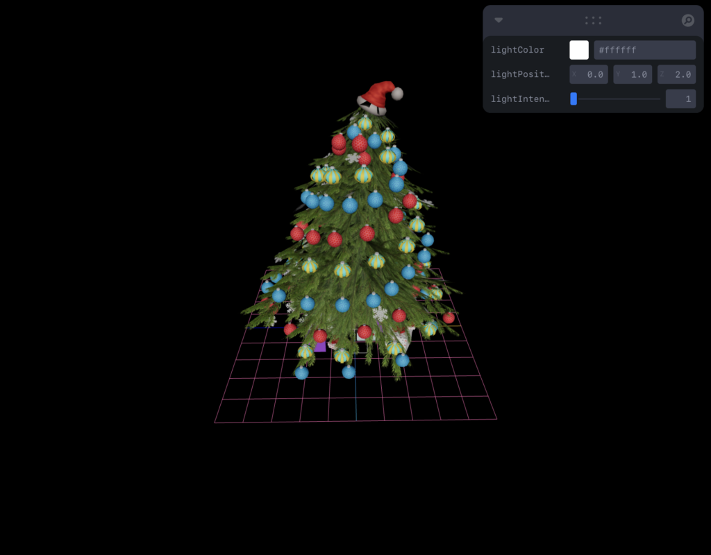 To add lights on the tree, we placed small spheres randomly on a cone with a similar size as the tree. Which included revisiting some high school geometry textbooks.