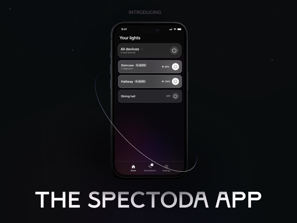 The Spectoda App is our latest user interface for controlling our lighting technologies. The first beta version is currently available in our native Spectoda Connect app, available for both Android and iOS. This version supports light dimming and CCT (Correlated Color Temperature) changing. We also plan to add an interface for RGB and RGBW LED strips as well as support for sensors soon.