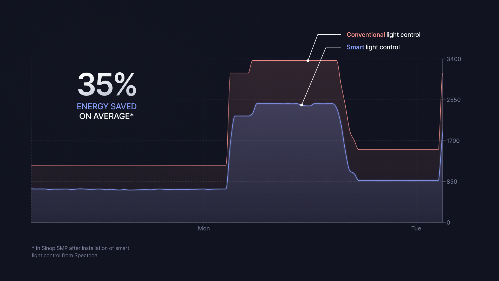 Spectoda Analytics was the first to be deployed in the administrative premises of Sinop SNP in České Budějovice. Data shows that the company saved an average of 35% of electricity in the first three months thanks to lighting control. By combining it with LED lighting, they achieved a total saving of almost 87%.